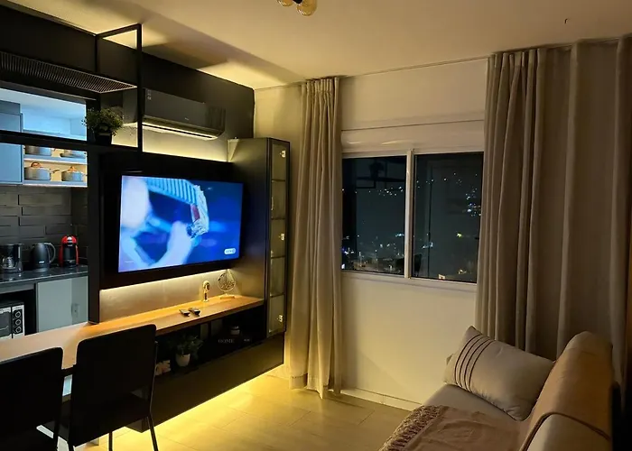 Enhance your stay with the apartment's a kitchenette area, furnished with oven for your comfort. The nearest airport is Salgado Filho International, 10 miles from Loft Completo, Garagem, Piscina Aquecida, Jacuzzi Apartment, and Sao Carlos bus station is about a 5-minute walk away. For a relaxing stay, a private swimming pool is offered to guests.